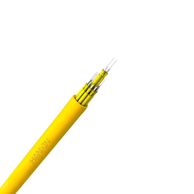 02~12芯,层绞式,非金属中心加强芯、单芯子单元(Φ900μm紧套光纤、芳纶加强元件)、PVC护套。